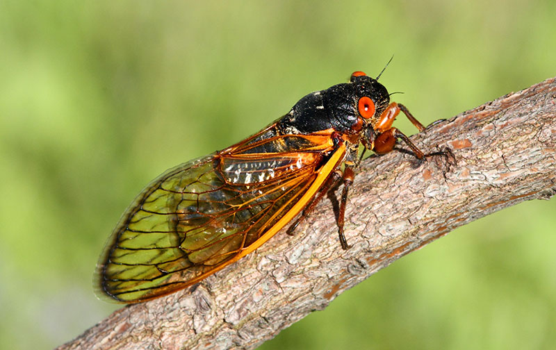 Periodical cicadas (Magicicada spp.) are among those insects that arrive in plagues.
